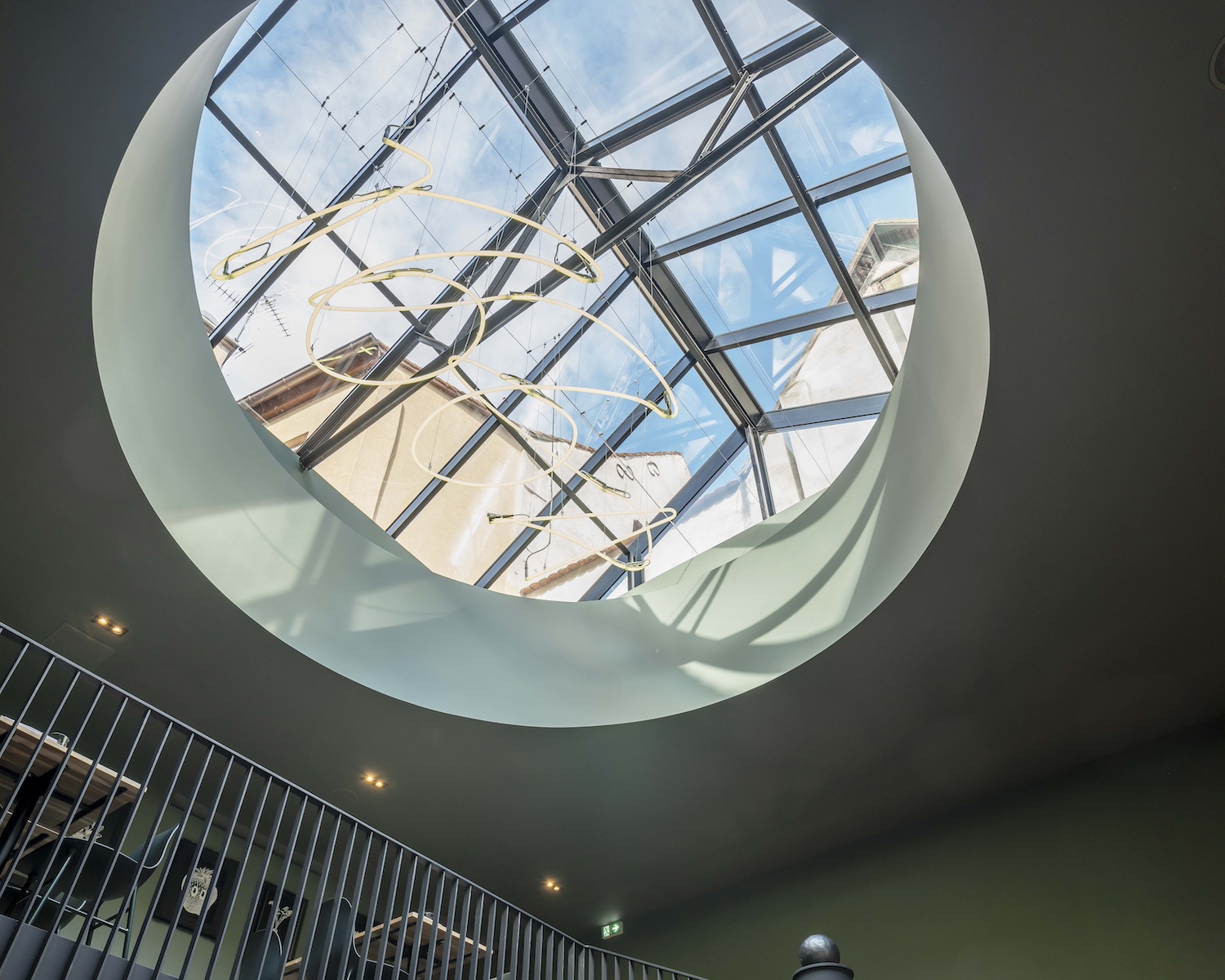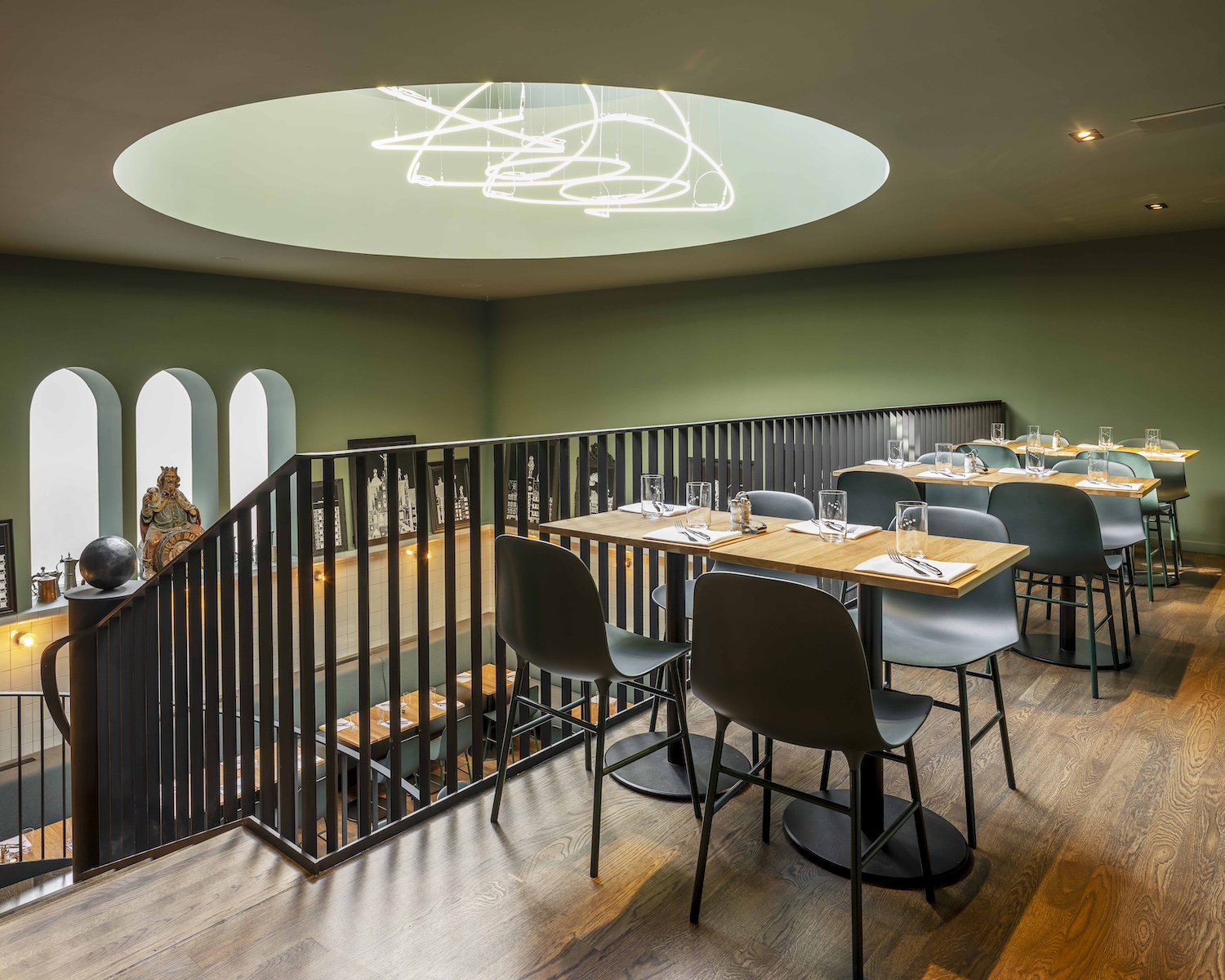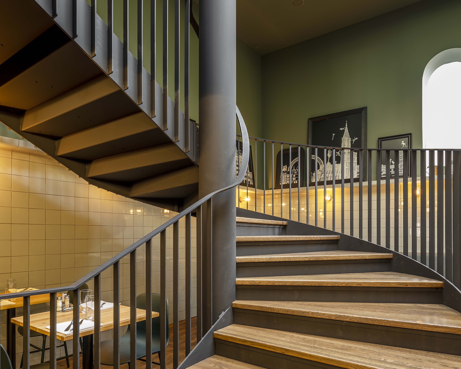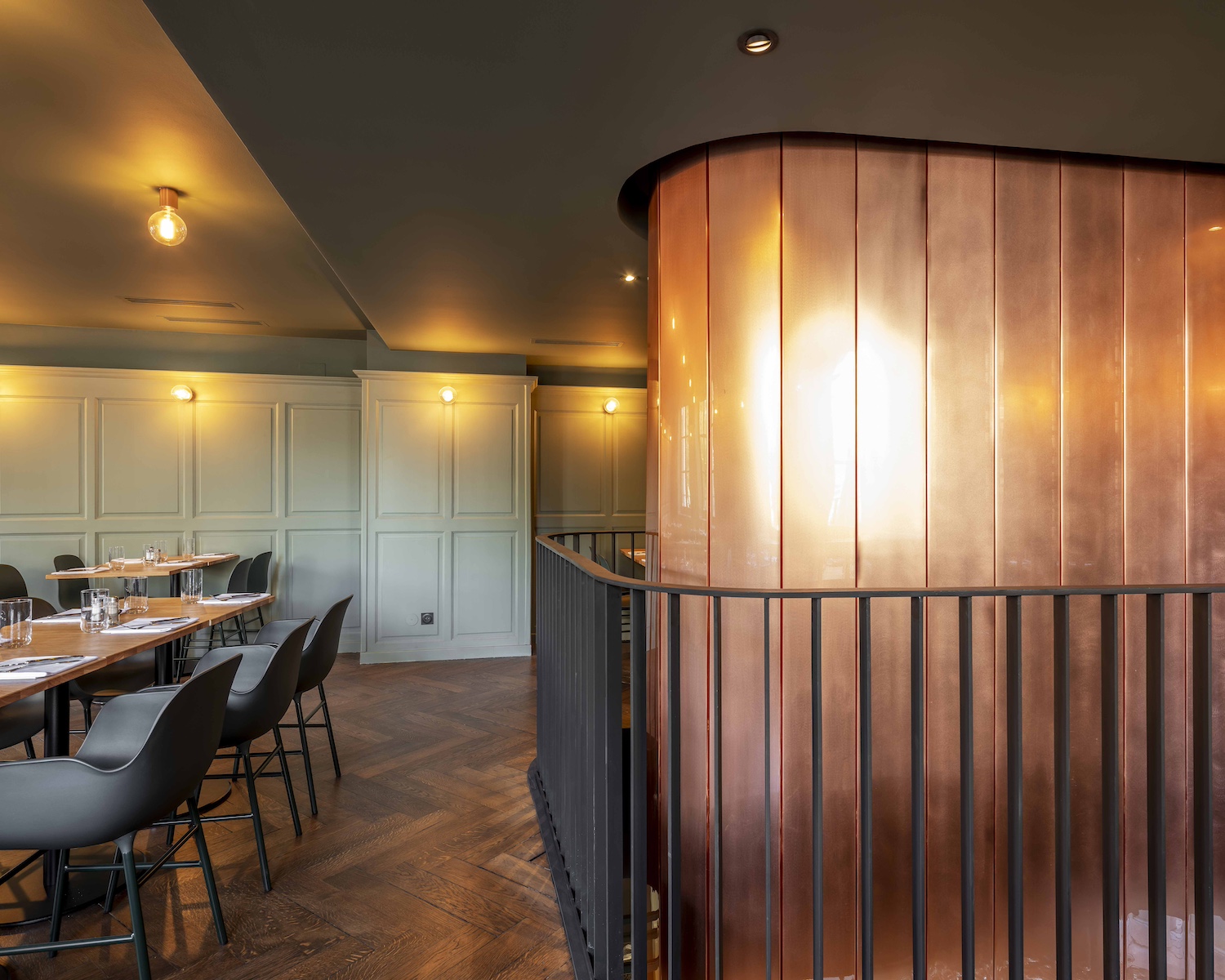 Bar monumental de 22 mètres, colonne en cuivre sur deux niveaux, verrière culminant à plus de 8 mètres, luminaire prestigieux en hommage à la grande tradition brassicole alsacienne : chaque choix de matériaux et de finitions a été pensé pour préserver l’âme du lieu tout en lui insufflant une nouvelle élégance.
