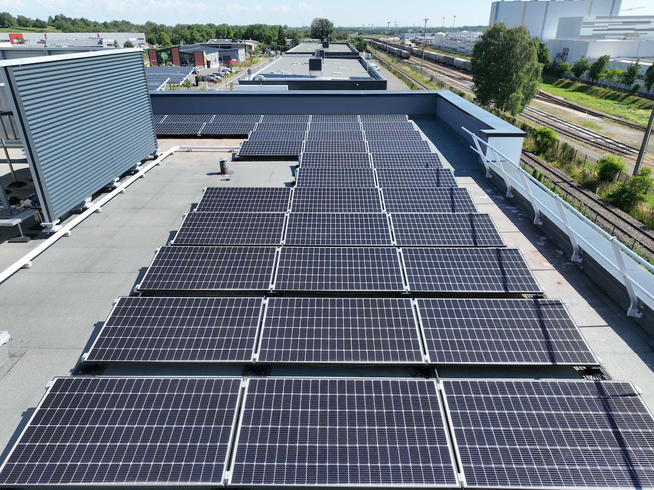 Sur cette opération, le groupe a assuré un rôle central, en intervenant à la fois en maîtrise d’œuvre d’exécution et en réalisation tous corps d’état, incluant le gros œuvre et l’ensemble des lots techniques et architecturaux. Cette organisation a permis une coordination fluide du chantier, de la phase structurelle jusqu’à la livraison. Des panneaux photovoltaïques en toiture assure également une partie d’autoconsommation du bâtiment.