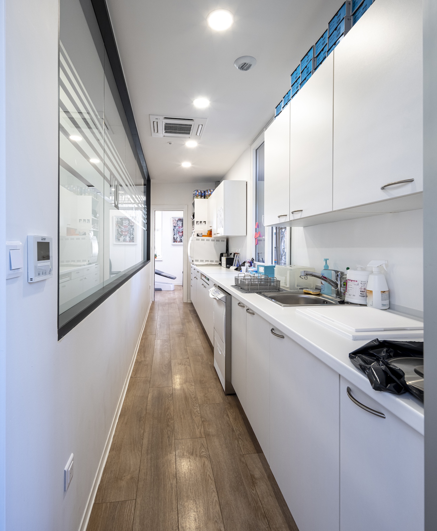 Dans un pavillon déjà structuré autour de deux cabinets médicaux, nous avons accompagné un orthodontiste dans la rénovation complète de son espace, avec un réaménagement du rez-de-chaussée où se situe le cabinet. L’intervention a intégré l’ensemble des mises aux normes PMR, afin d’offrir un parcours patient fluide, confortable et pleinement accessible.