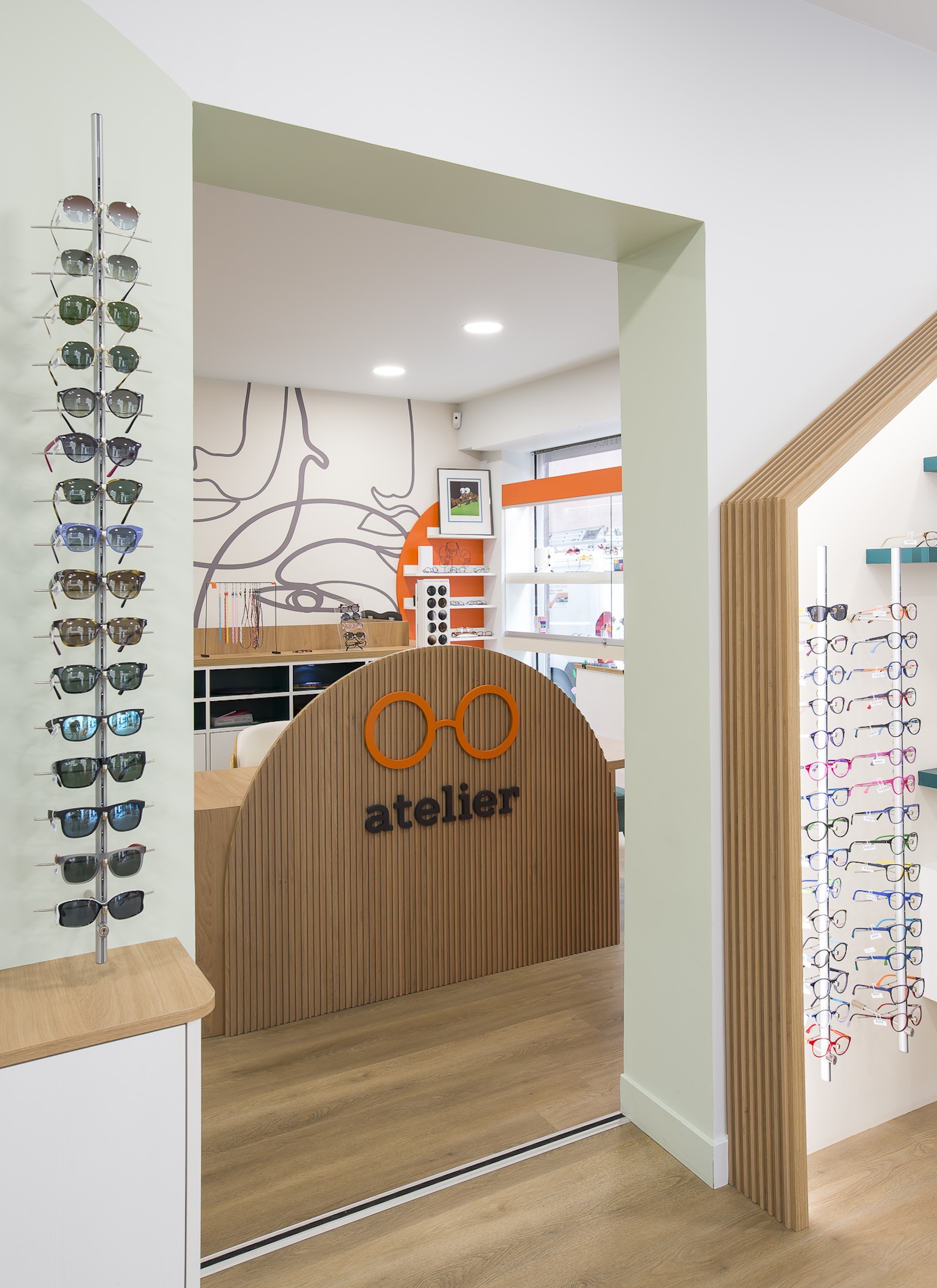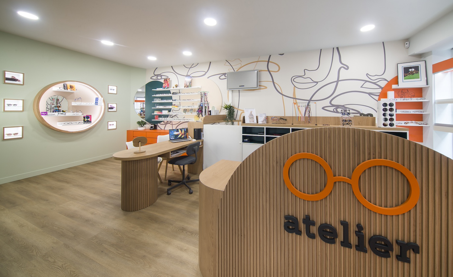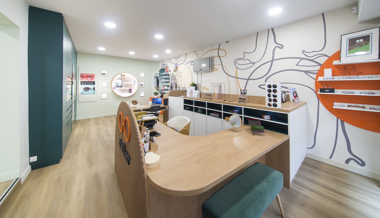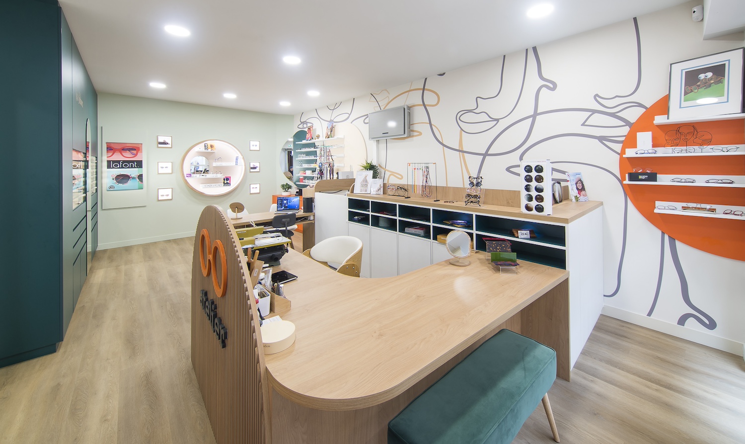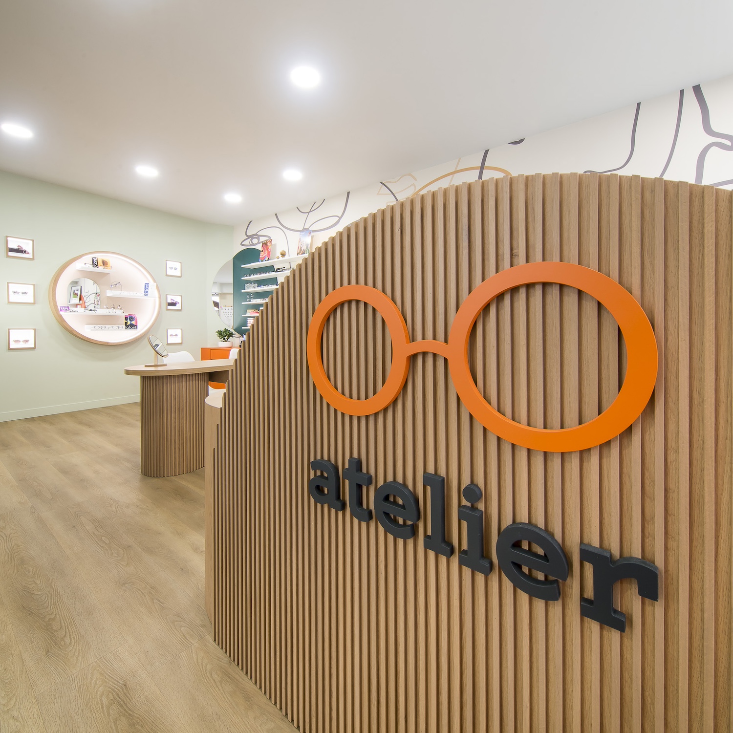 Créatio a accordé une importance particulière à la cohérence entre conception et réalisation. Ici, les ateliers dédiés aux montures et aux verres sur mesure, véritables cœurs battants de la boutique, étaient jusqu’alors peu visibles. Notre mission a été de les révéler. Aux côtés du STUDIO CAMARASA, nous avons travaillé main dans la main avec la cliente pour imaginer un lieu qui lui ressemble, un espace où l’ambiance, les matériaux et la mise en scène expriment naturellement son univers professionnel. L’architecture intérieure a été pensée pour rendre lisible l’expertise artisanale, tout en offrant une expérience chaleureuse et haut de gamme aux visiteurs.