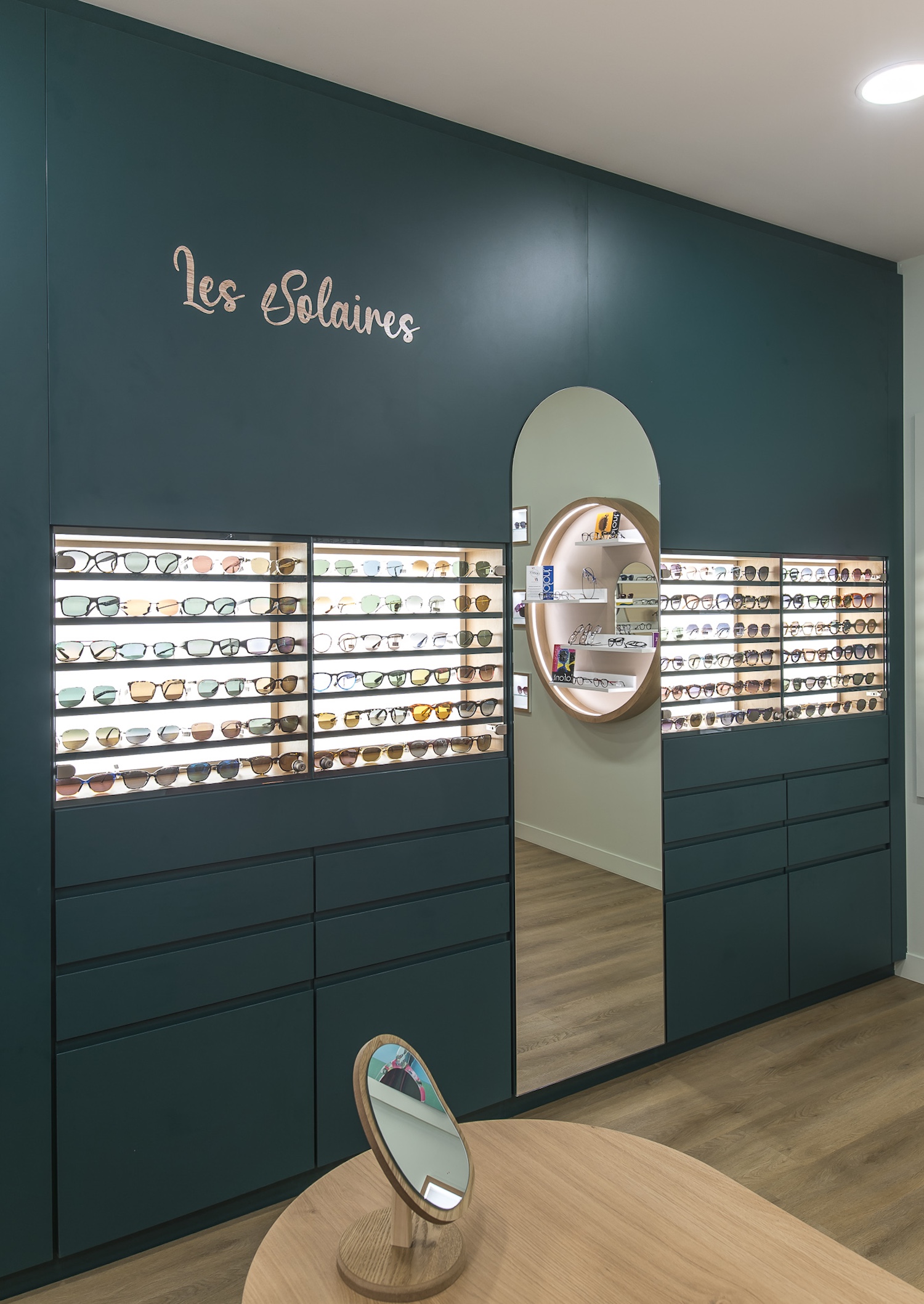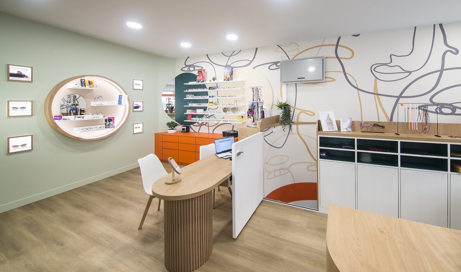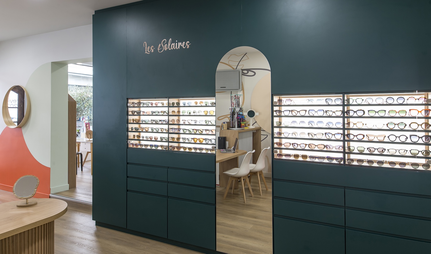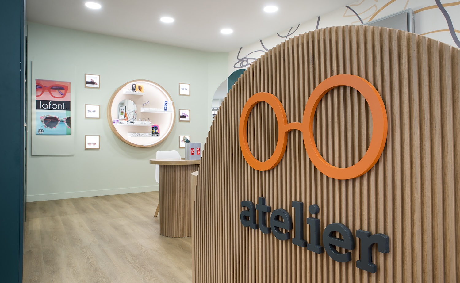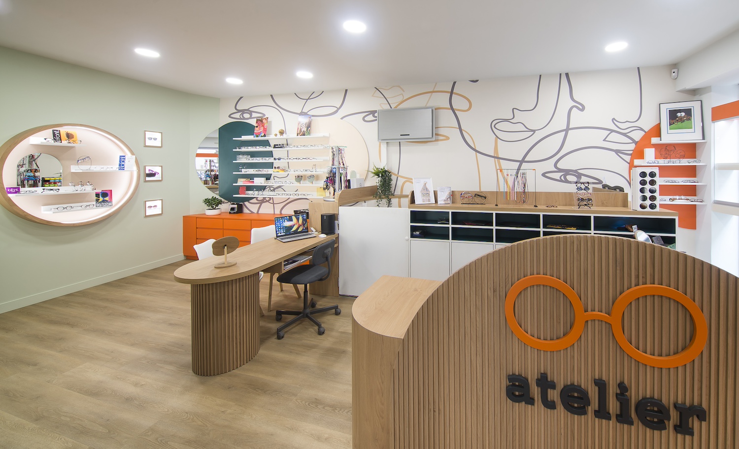 Créatio a accordé une importance particulière à la cohérence entre conception et réalisation. Ici, les ateliers dédiés aux montures et aux verres sur mesure, véritables cœurs battants de la boutique, étaient jusqu’alors peu visibles. Notre mission a été de les révéler. Aux côtés du STUDIO CAMARASA, nous avons travaillé main dans la main avec la cliente pour imaginer un lieu qui lui ressemble, un espace où l’ambiance, les matériaux et la mise en scène expriment naturellement son univers professionnel. L’architecture intérieure a été pensée pour rendre lisible l’expertise artisanale, tout en offrant une expérience chaleureuse et haut de gamme aux visiteurs.