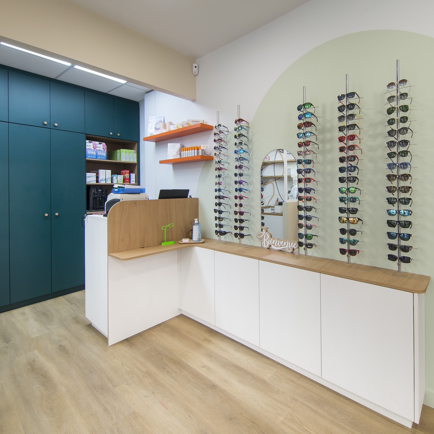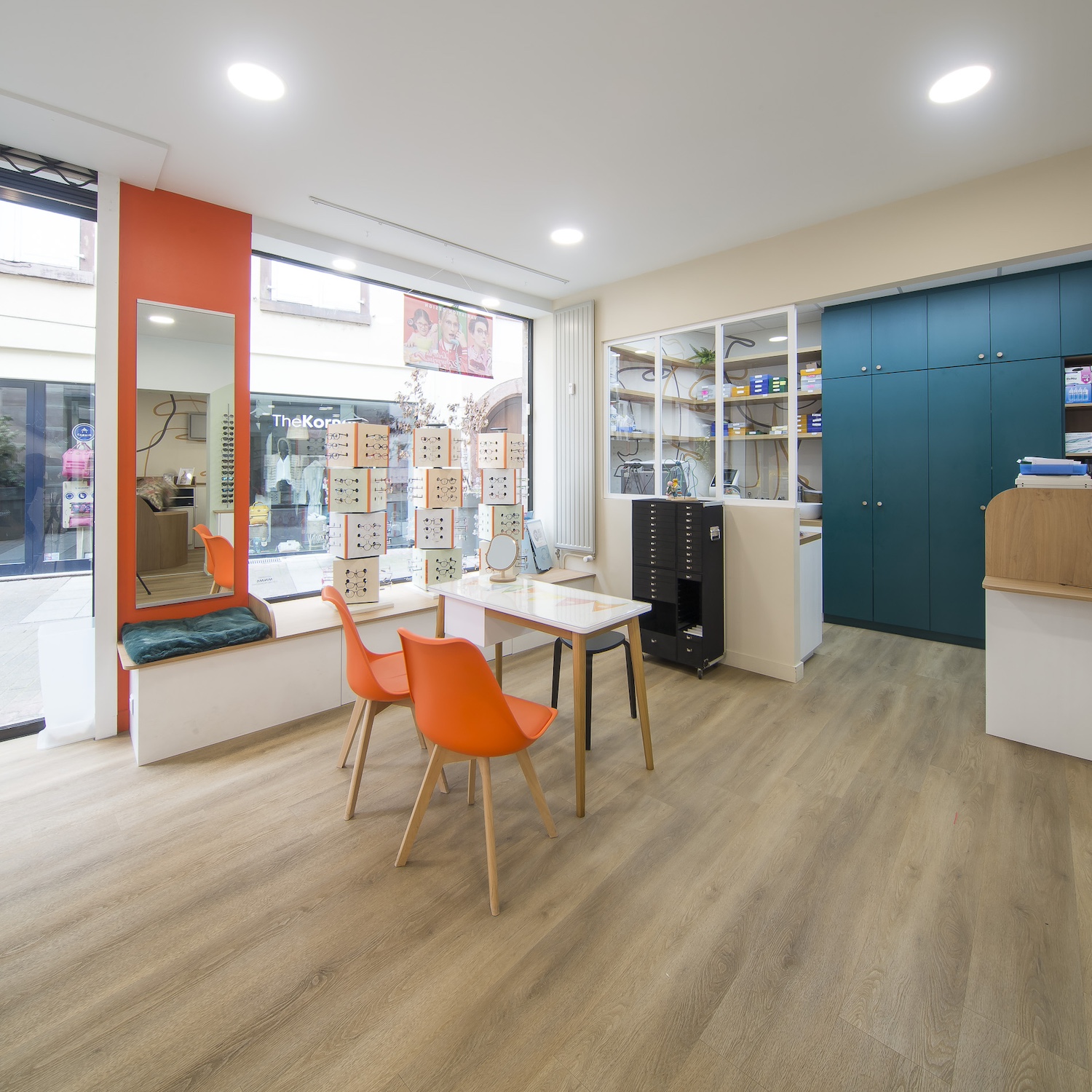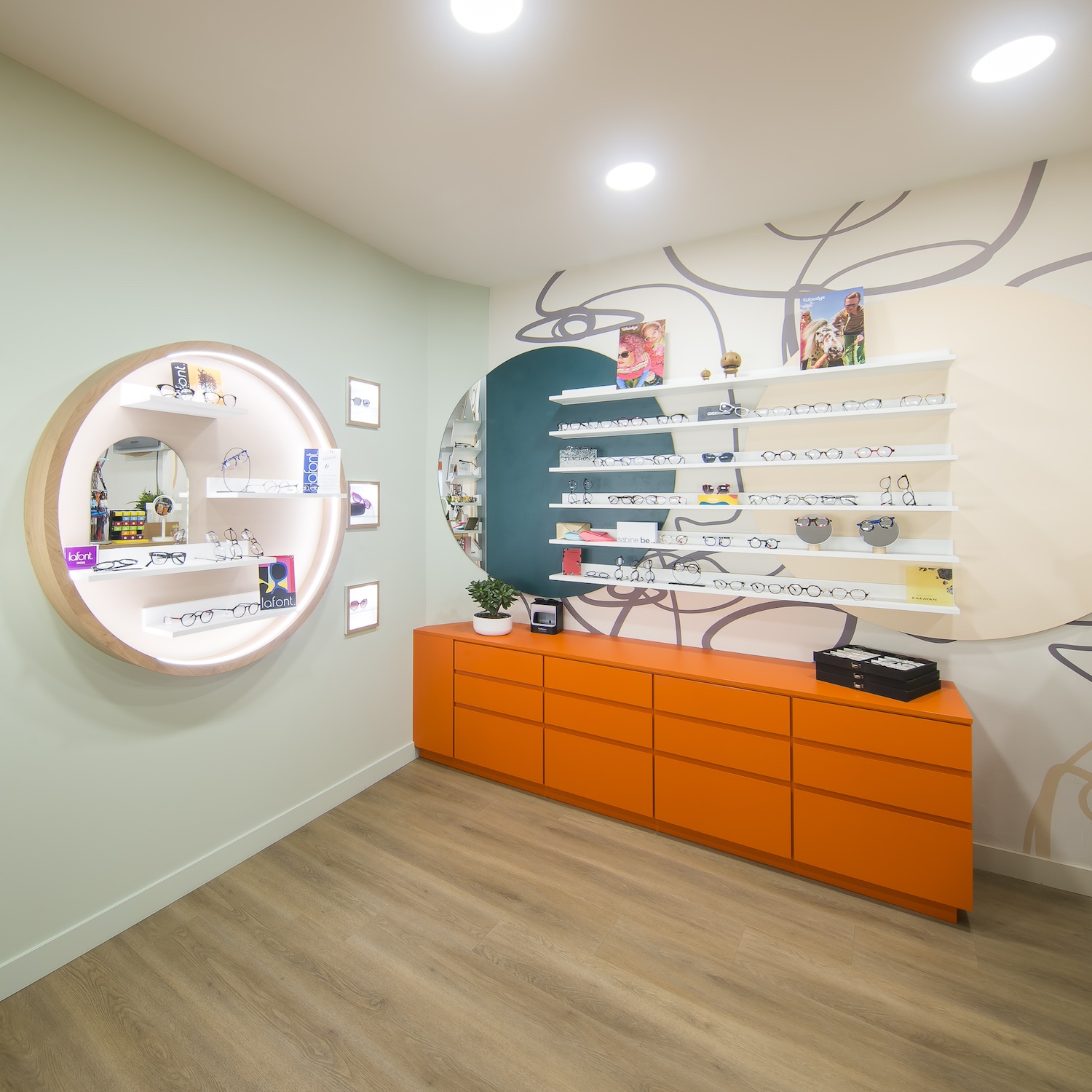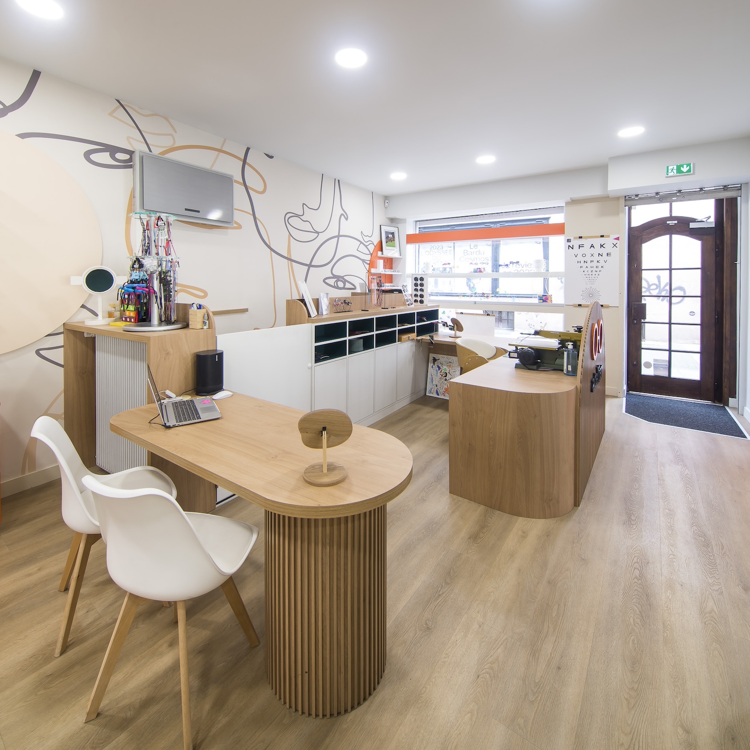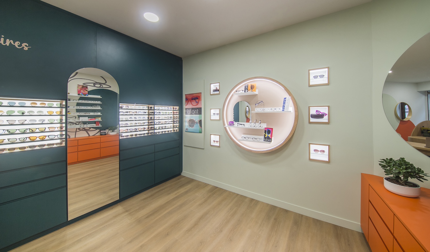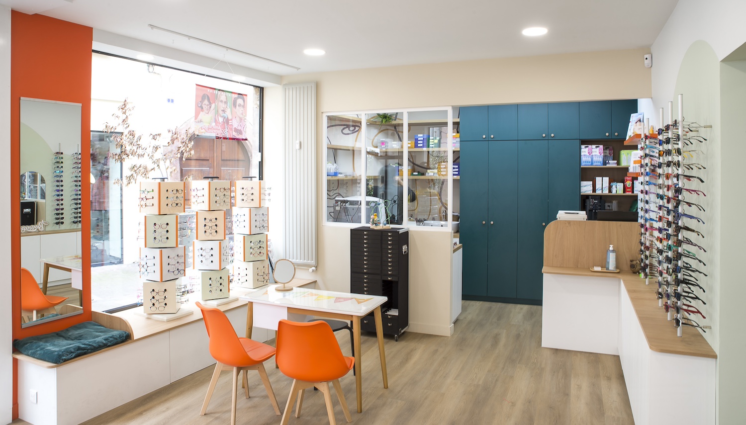 Créatio a accordé une importance particulière à la cohérence entre conception et réalisation. Ici, les ateliers dédiés aux montures et aux verres sur mesure, véritables cœurs battants de la boutique, étaient jusqu’alors peu visibles. Notre mission a été de les révéler. Aux côtés du STUDIO CAMARASA, nous avons travaillé main dans la main avec la cliente pour imaginer un lieu qui lui ressemble, un espace où l’ambiance, les matériaux et la mise en scène expriment naturellement son univers professionnel. L’architecture intérieure a été pensée pour rendre lisible l’expertise artisanale, tout en offrant une expérience chaleureuse et haut de gamme aux visiteurs.