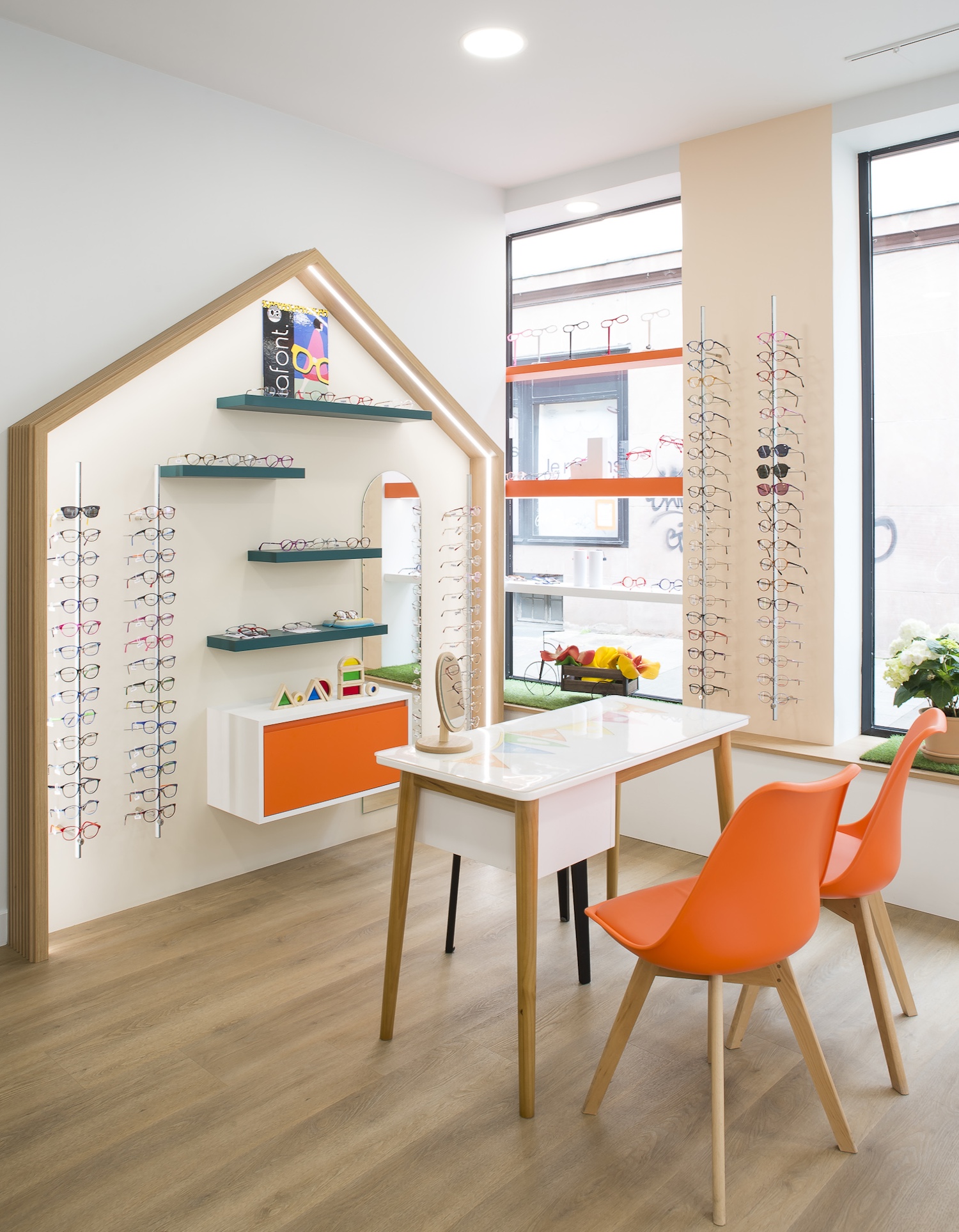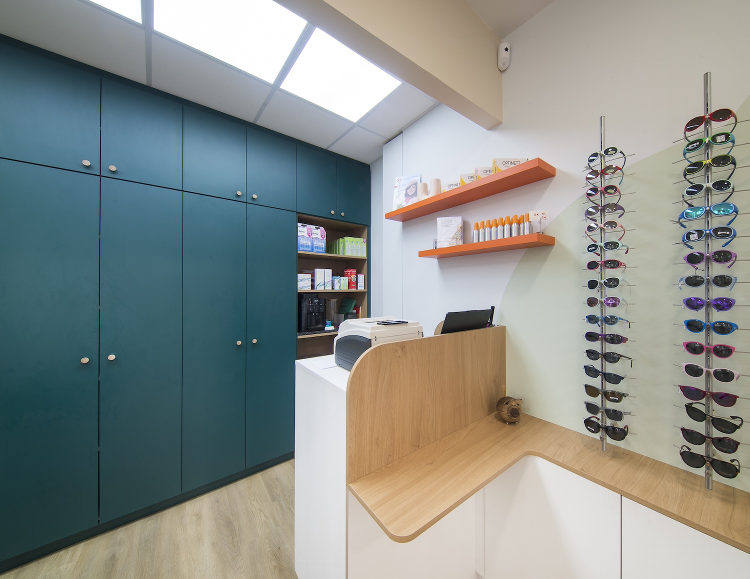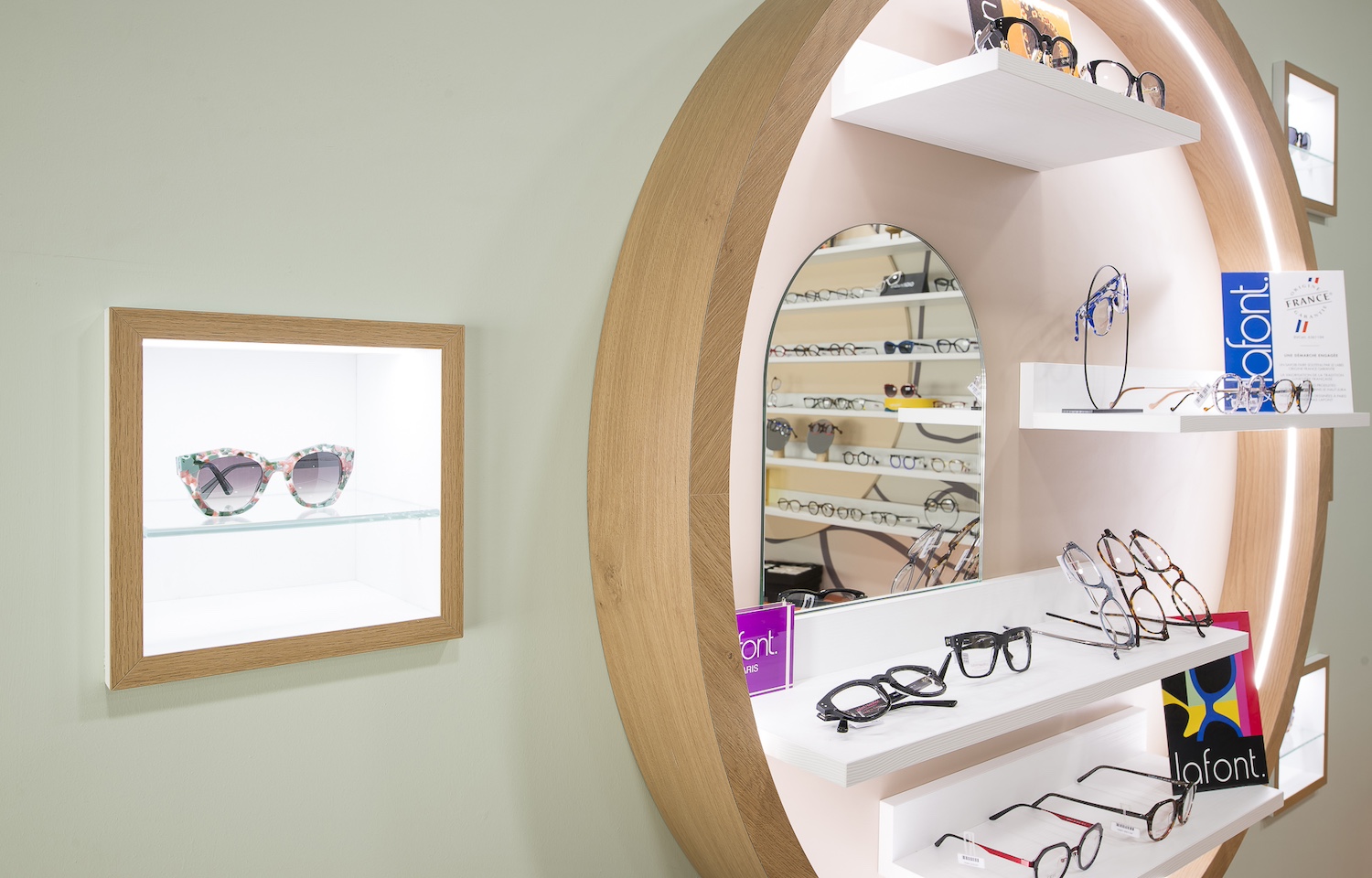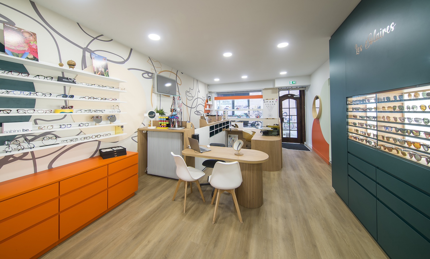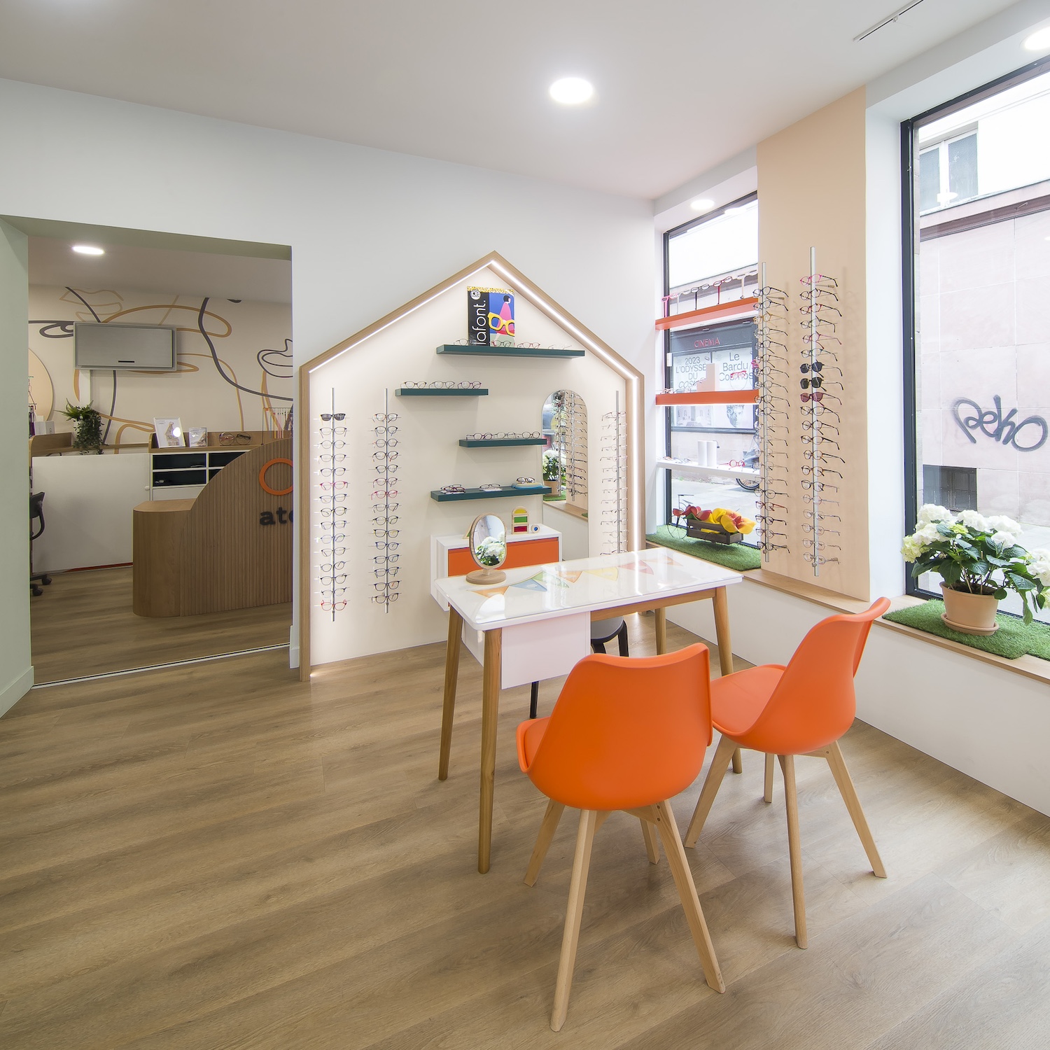 Créatio a accordé une importance particulière à la cohérence entre conception et réalisation. Ici, les ateliers dédiés aux montures et aux verres sur mesure, véritables cœurs battants de la boutique, étaient jusqu’alors peu visibles. Notre mission a été de les révéler. Aux côtés du STUDIO CAMARASA, nous avons travaillé main dans la main avec la cliente pour imaginer un lieu qui lui ressemble, un espace où l’ambiance, les matériaux et la mise en scène expriment naturellement son univers professionnel. L’architecture intérieure a été pensée pour rendre lisible l’expertise artisanale, tout en offrant une expérience chaleureuse et haut de gamme aux visiteurs.