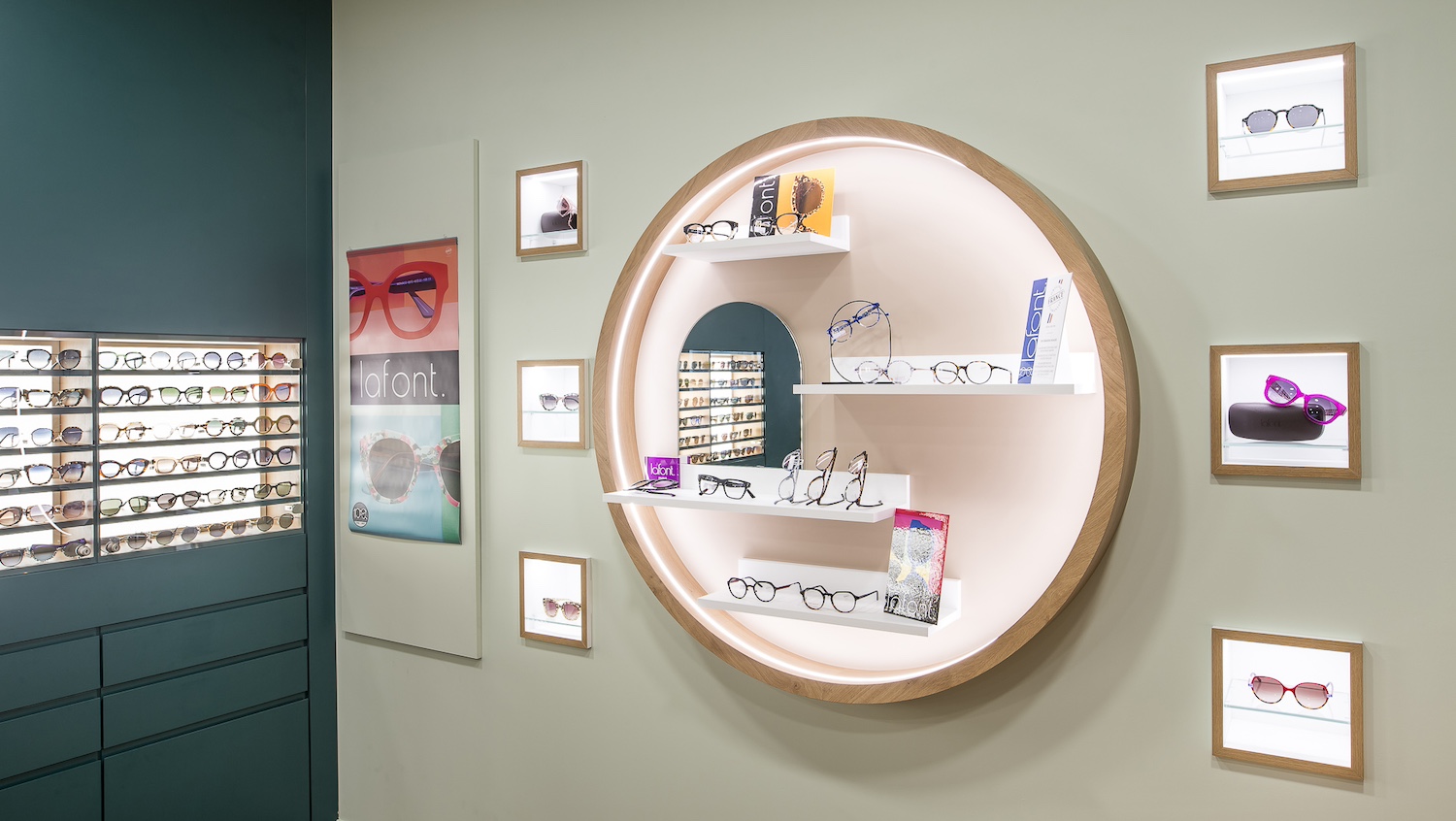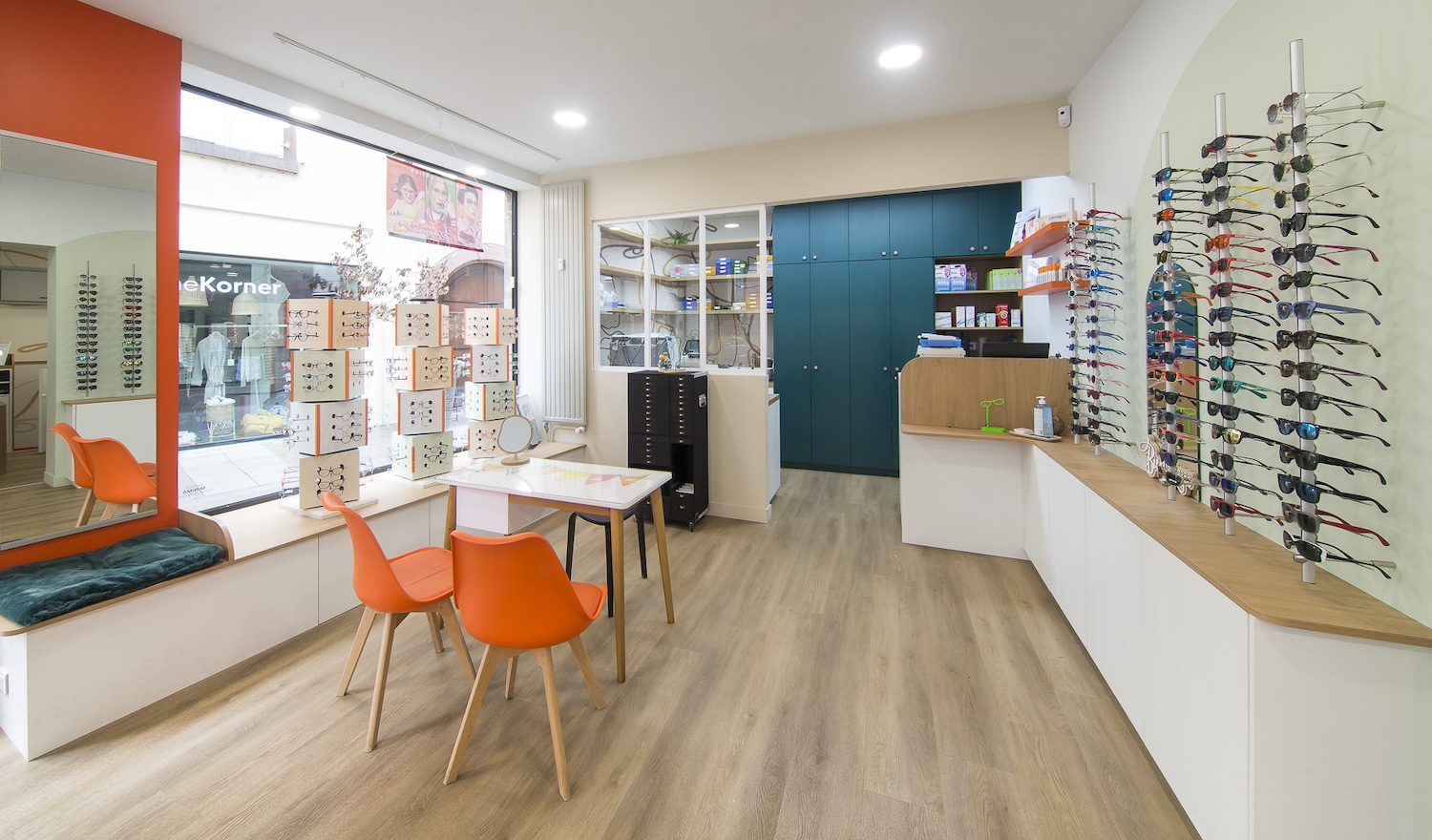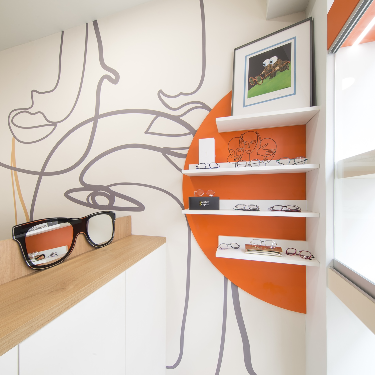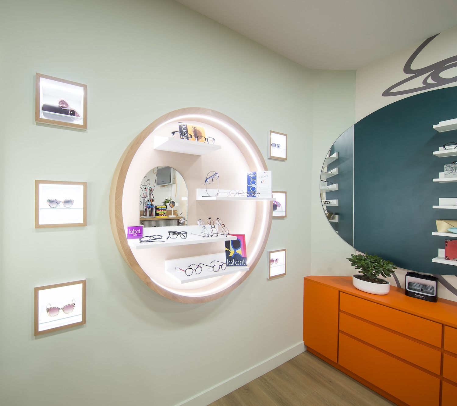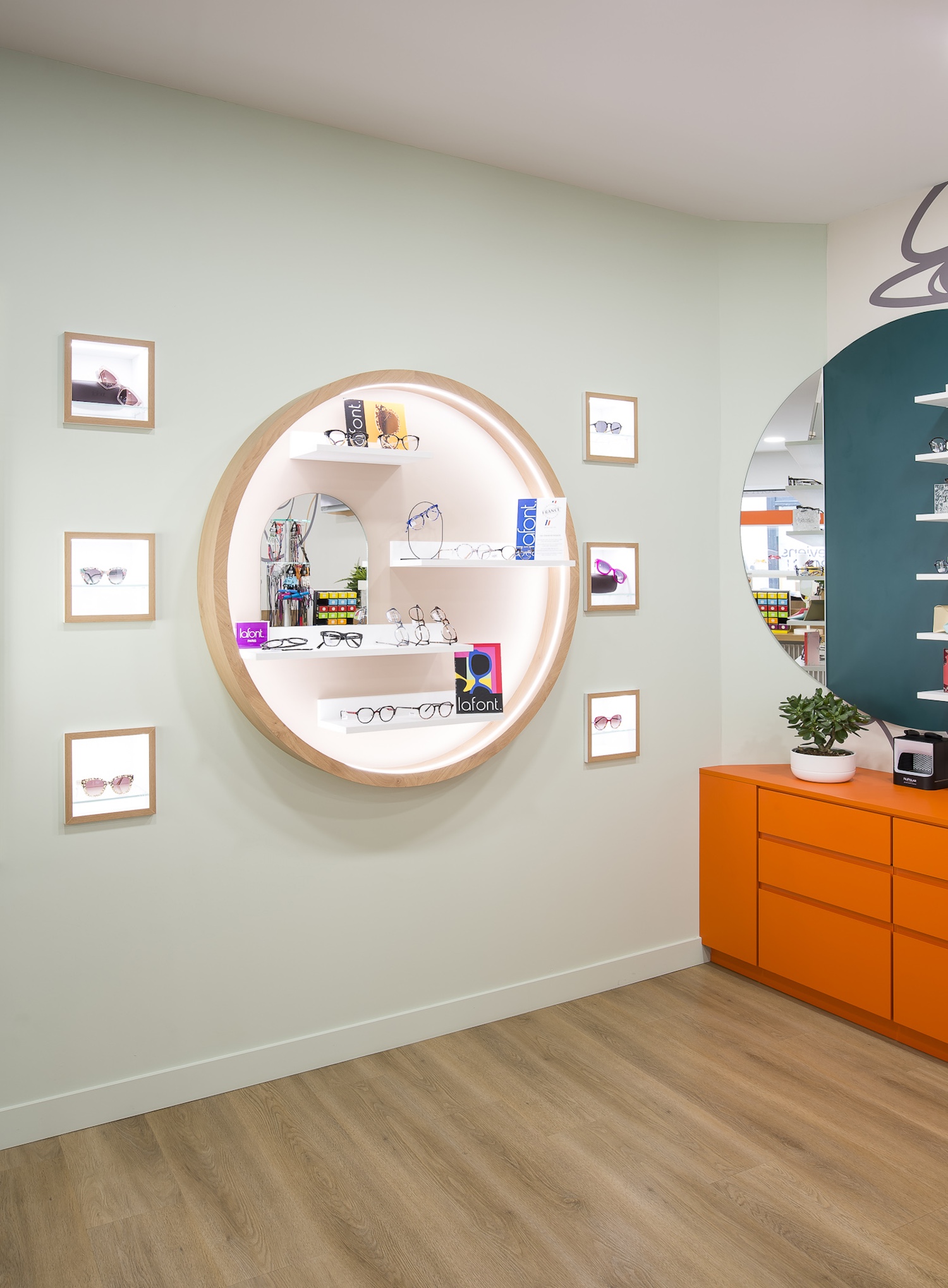 Créatio a accordé une importance particulière à la cohérence entre conception et réalisation. Ici, les ateliers dédiés aux montures et aux verres sur mesure, véritables cœurs battants de la boutique, étaient jusqu’alors peu visibles. Notre mission a été de les révéler. Aux côtés du STUDIO CAMARASA, nous avons travaillé main dans la main avec la cliente pour imaginer un lieu qui lui ressemble, un espace où l’ambiance, les matériaux et la mise en scène expriment naturellement son univers professionnel. L’architecture intérieure a été pensée pour rendre lisible l’expertise artisanale, tout en offrant une expérience chaleureuse et haut de gamme aux visiteurs.