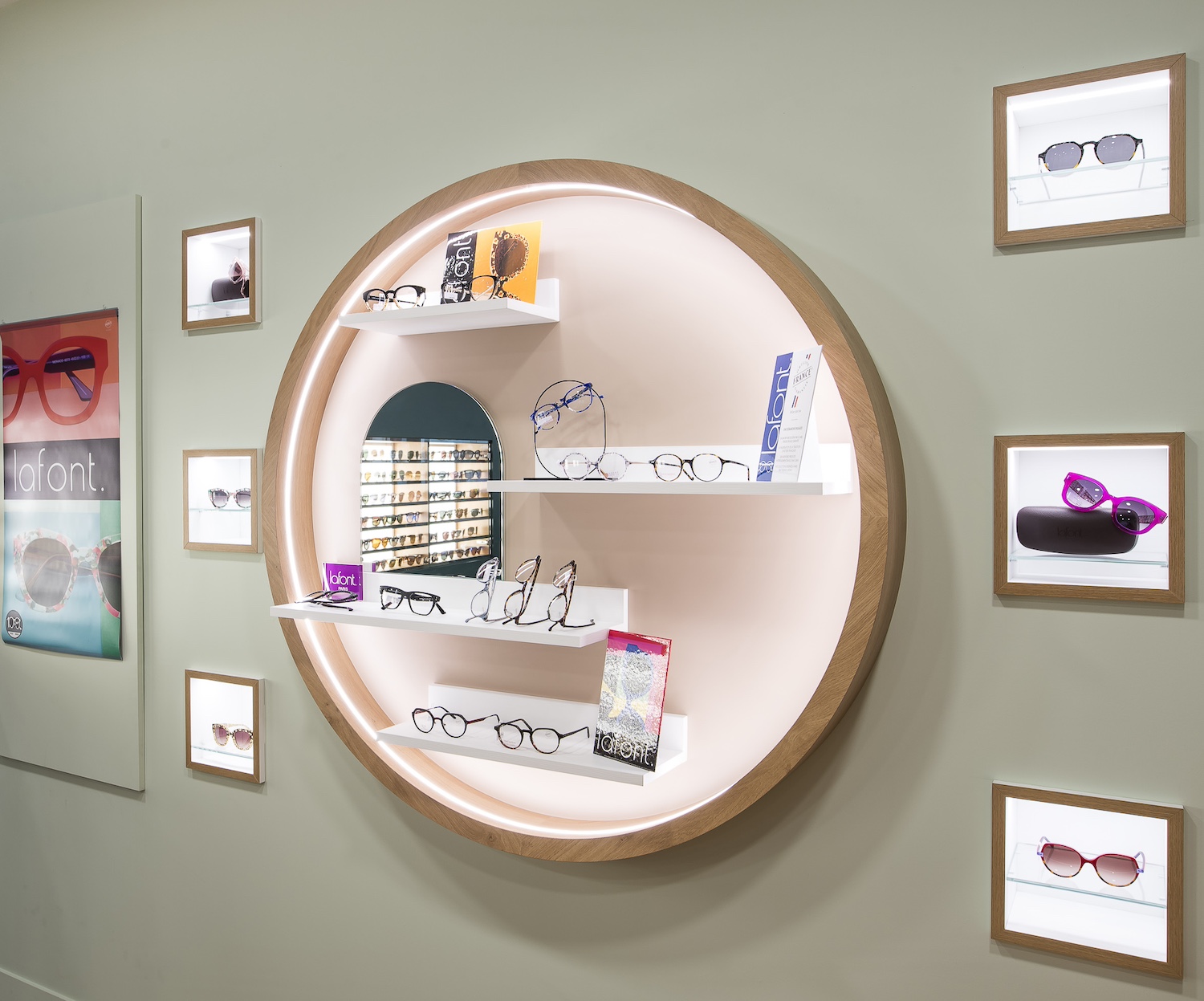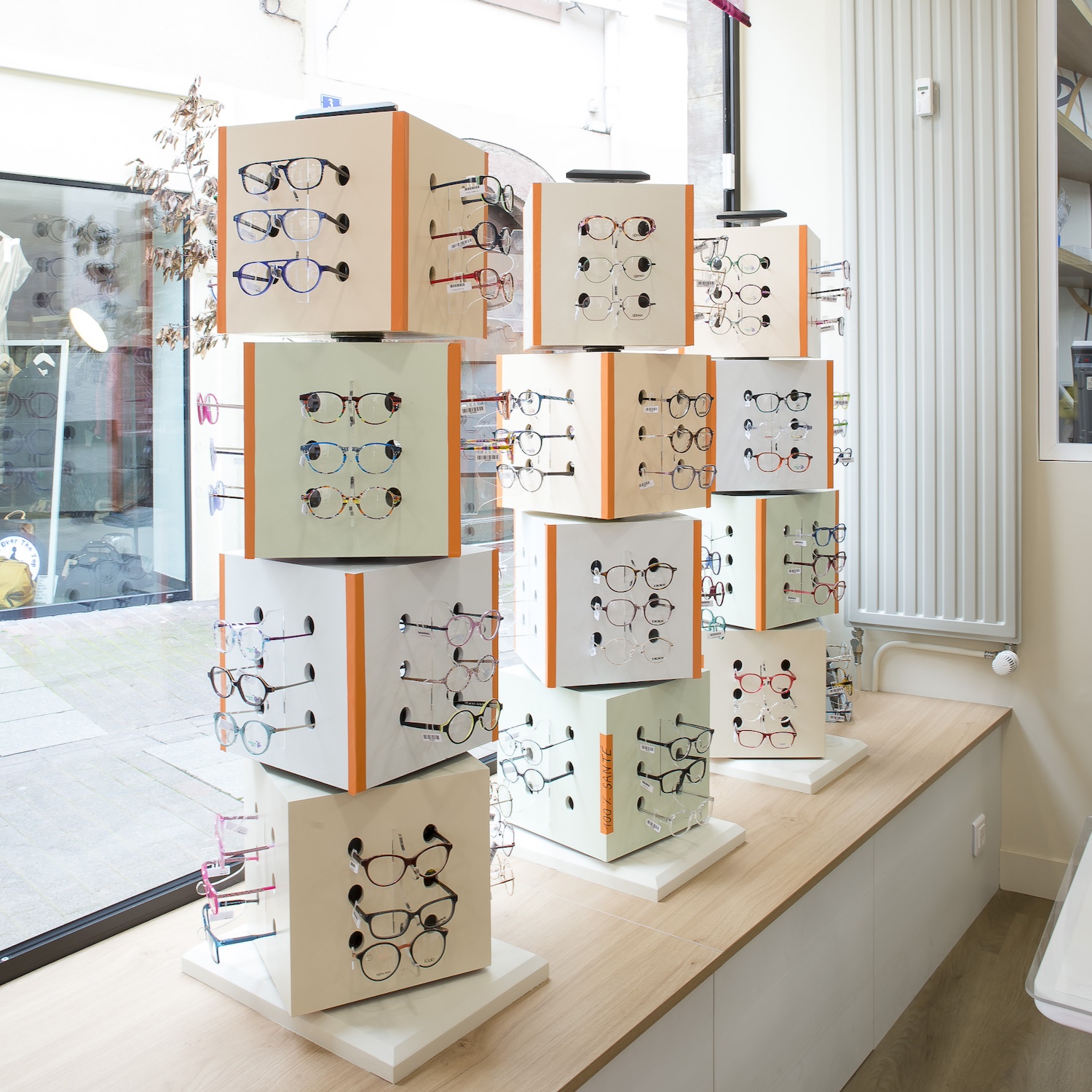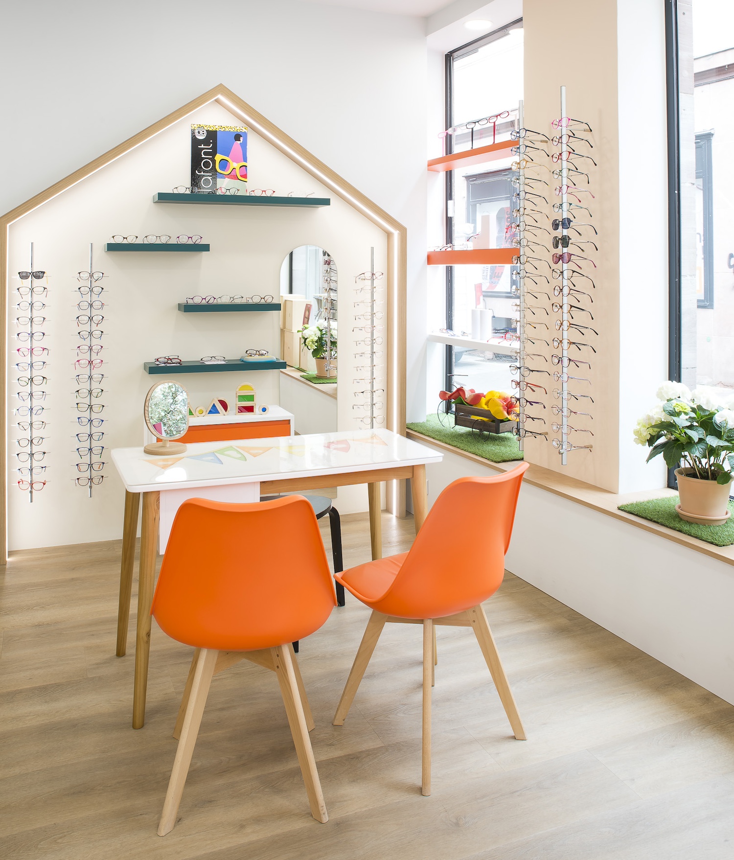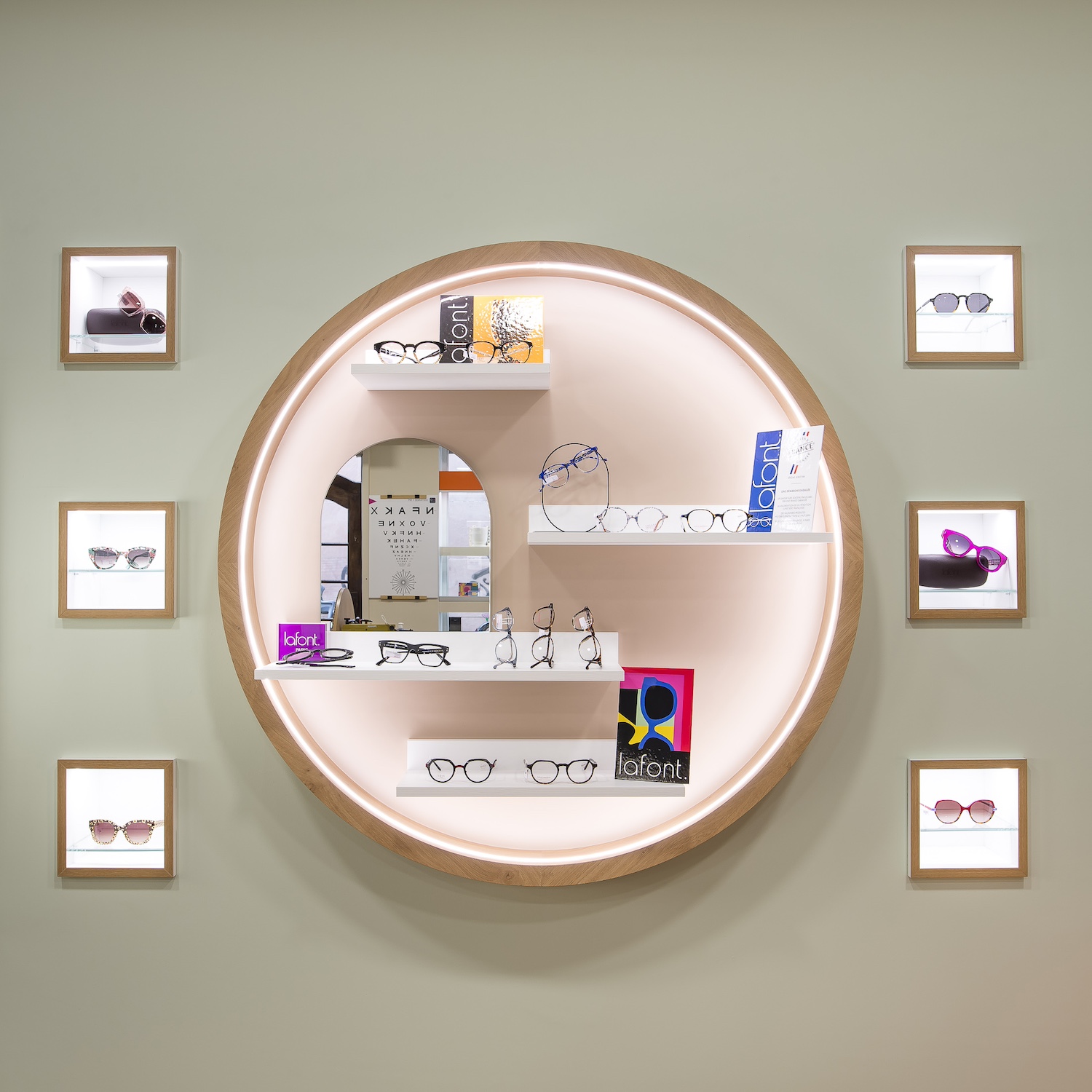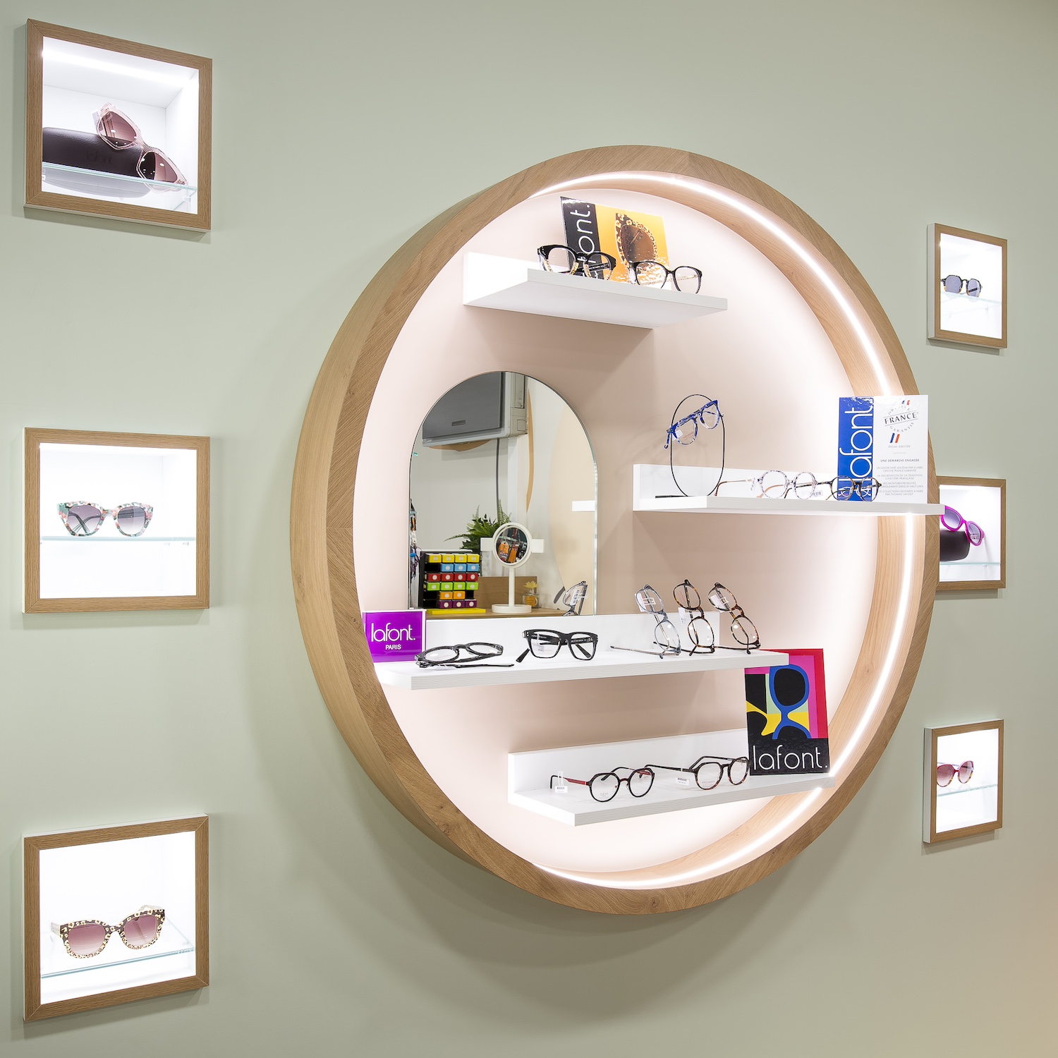 Créatio a accordé une importance particulière à la cohérence entre conception et réalisation. Ici, les ateliers dédiés aux montures et aux verres sur mesure, véritables cœurs battants de la boutique, étaient jusqu’alors peu visibles. Notre mission a été de les révéler. Aux côtés du STUDIO CAMARASA, nous avons travaillé main dans la main avec la cliente pour imaginer un lieu qui lui ressemble, un espace où l’ambiance, les matériaux et la mise en scène expriment naturellement son univers professionnel. L’architecture intérieure a été pensée pour rendre lisible l’expertise artisanale, tout en offrant une expérience chaleureuse et haut de gamme aux visiteurs.