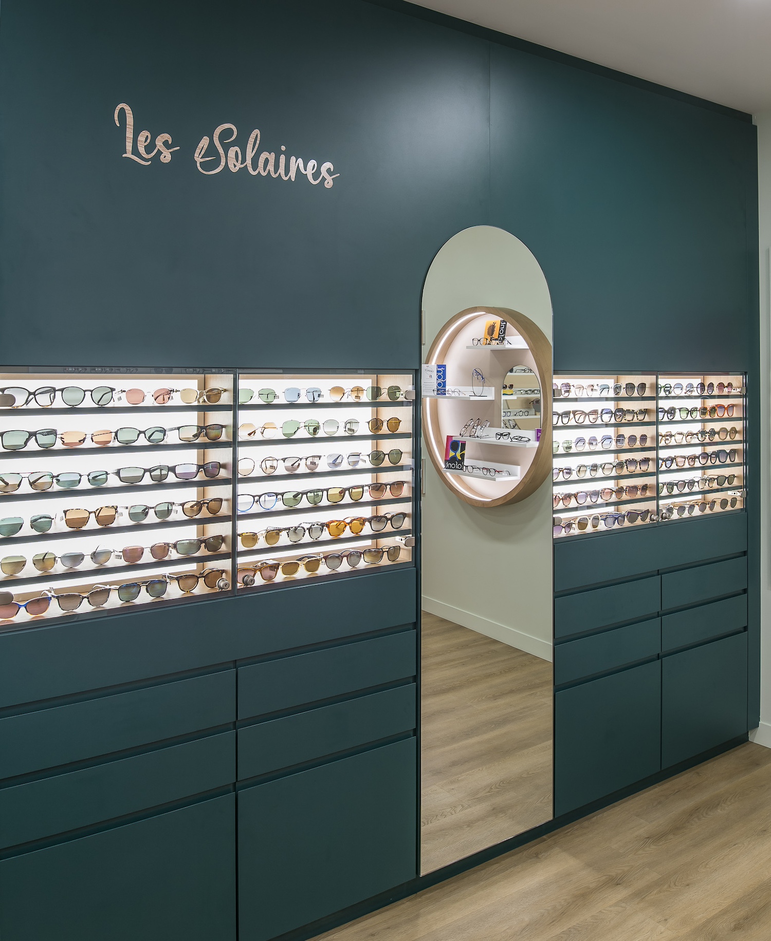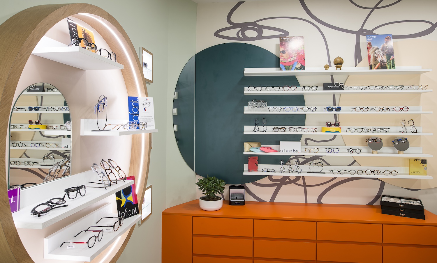 La propriétaire d’ Optique Annick Marmet, souhaitait que son espace de vente reflète pleinement son identité et mette en lumière sa vision singulière du métier d’opticienne. Un lieu capable de transmettre, dès les premiers pas, la précision, la passion et l’approche artisanale qui caractérisent son travail.