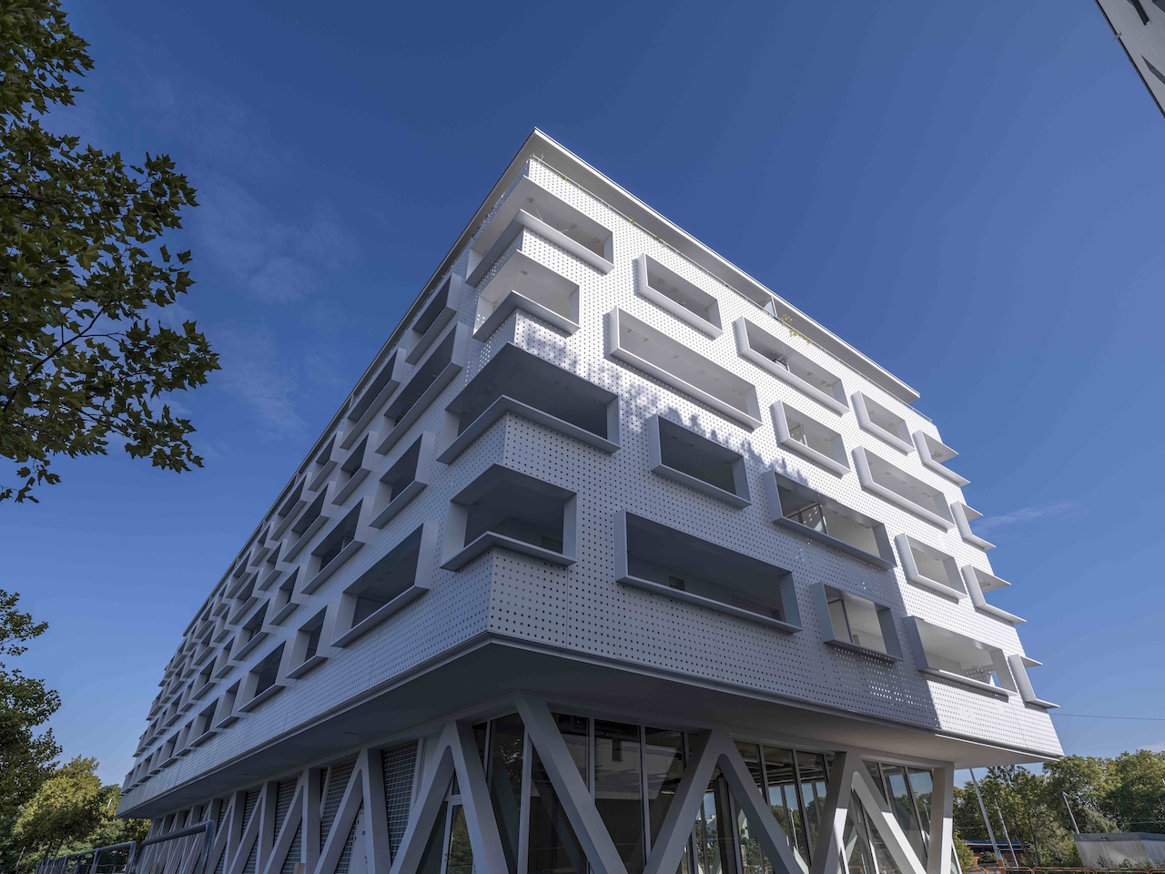 Située au cœur de l’éco-quartier Les Prairies du Canal, à Illkirch-Graffenstaden, la résidence étudiante UNITHA bénéficie d’un emplacement stratégique au sein du Parc d’Innovation, à proximité immédiate du campus universitaire, des lycées et des écoles d’ingénieurs. KS Construction est intervenue sur la réalisation du gros œuvre de cet ensemble immobilier livré en 2021.