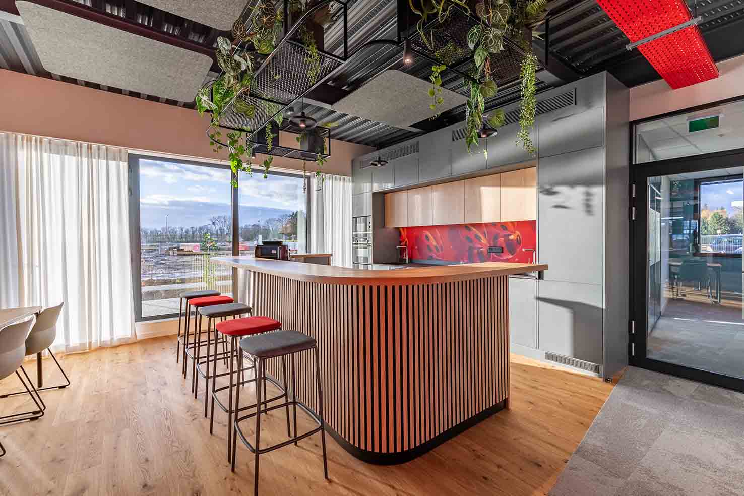 Implantés au sein du parc d’activité Bonaparc à Ittenheim, les bureaux de Würth Elektronik s’inscrivent dans un projet porté par KS Groupe : commercialisation par KS Promotion, construction du bâtiment et de la cellule bureau par KS Construction, aménagements intérieur par KS Aménagement. La toiture est équipée d’une centrale photovoltaïque réalisée par KS Énergies, renforçant la performance énergétique du site.